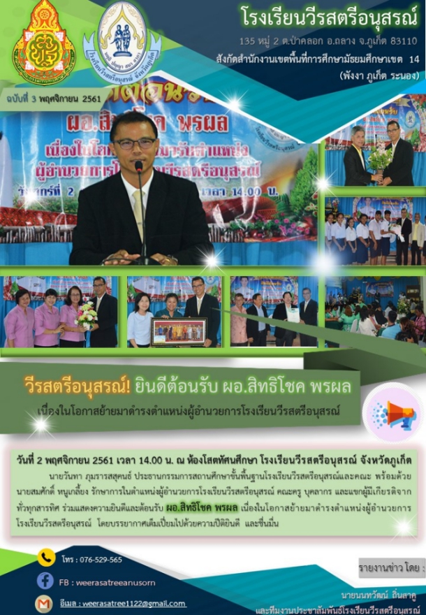 วันที่ 2 พฤศจิกายน 2561 เวลา 14.00 น. ณ ห้องโสตทัศนศึกษา โรงเรียนวีรสตรีอนุสรณ์ จังหวัดภูเก็ต