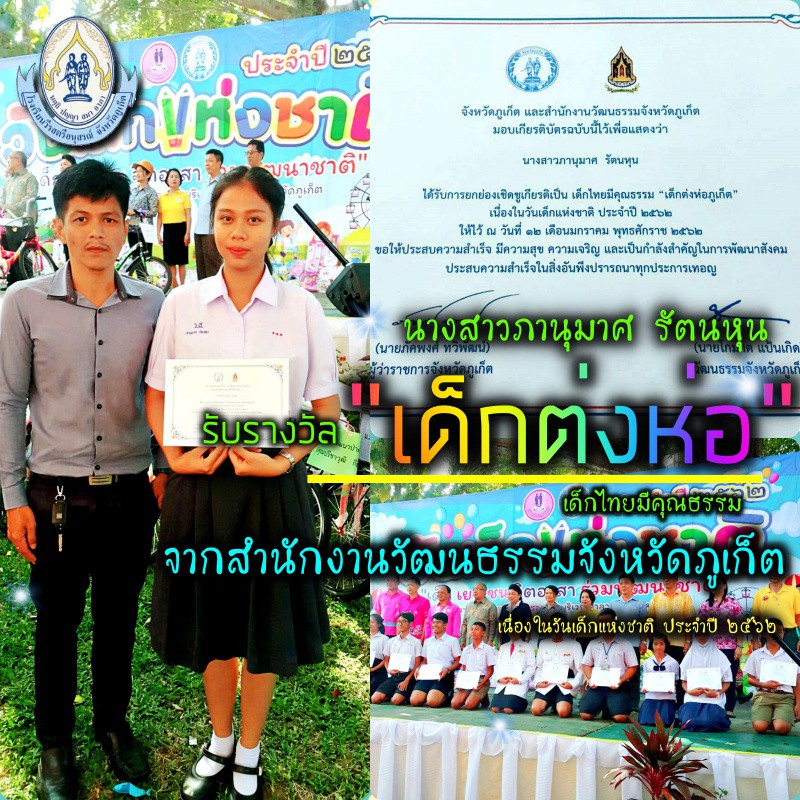 นักเรียนโรงเรียนวีรสตรีอนุรณ์ รับรางวัลเด็กต่งห่อ เด็กไทยมีคุณธรรม