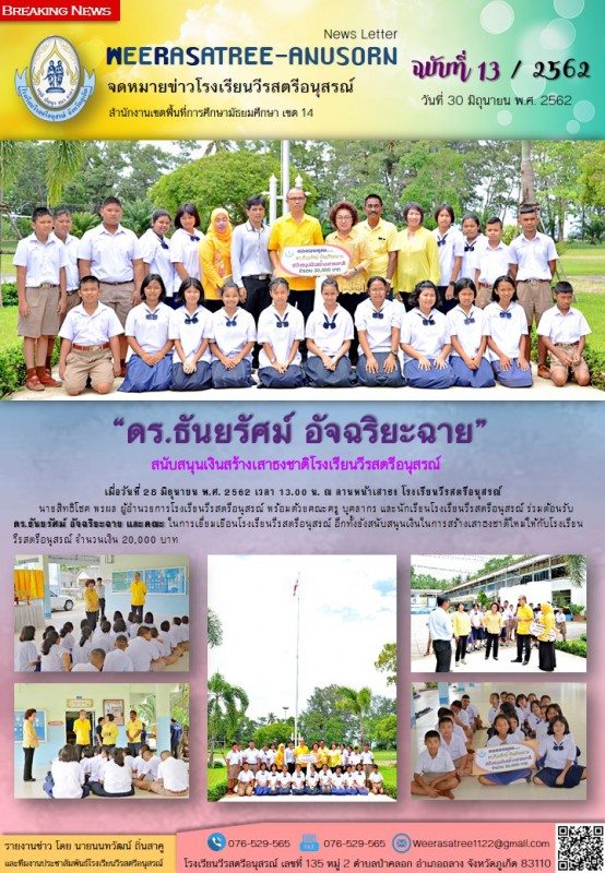ดร.ธันยรัศม์ อัจฉริยะฉาย สนับสนุนเงินสร้างเสาธง