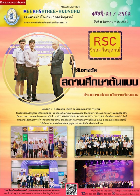 รับรางวัลสถานศึกษาต้นแบบ ด้านความปลอดภัยทางท้องถนน