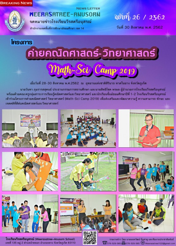 ค่ายคณิตศาสตร์ วิทยาศาสตร์ (Math-Sci camp 2019) โรงเรียนวีรสตรีอนุสรณ์