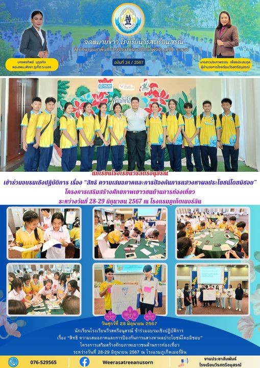 นักเรียนเข้าร่วมอบรมเชิงปฏิบัติการ เรื่อง "สิทธิและภาคเสมอภาคและการป้องกันการแสวงหาผลประโยชน์โดยมิชอบ